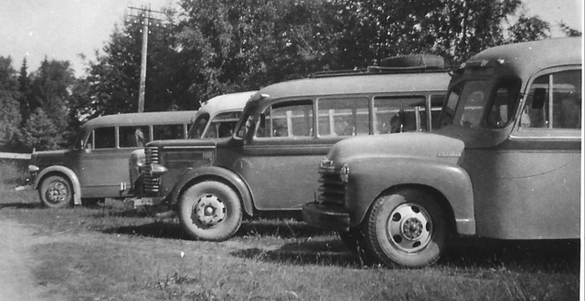 Sodan kestäneet luiskanokkaiset Volvot ja pitkänokkaiset Sisut ajoivat kauppalasta maaseutulinjoja 50-luvun alussa.